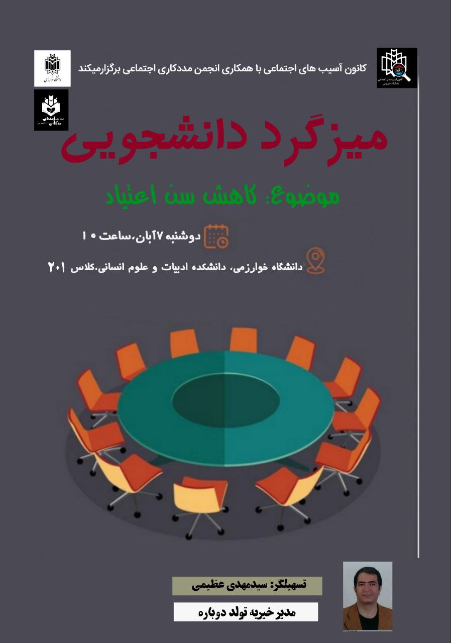 🔻کانون آسیب های اجتماعی،با همکاری انجمن علمی مددکاری اجتماعی دانشگاه خوارزمی برگزار میکند: